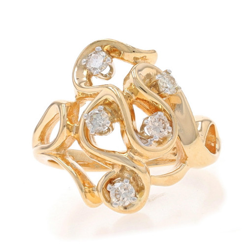 Yellow Gold Diamond Cluster Cocktail Ring - 14k Round Brilliant 0.28ctw