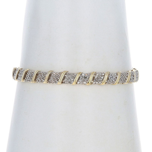 Yellow Gold Diamond Cluster Link Bracelet 7 1/4" - 10k Single Cut 2.00ctw