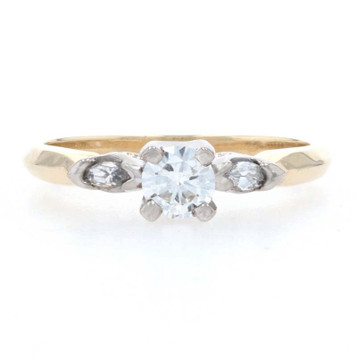 Yellow Gold Diamond Engagement Ring - 14k Round Brilliant Cut .54ctw Knife-Edge