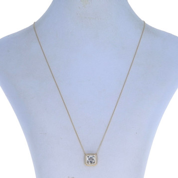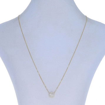 Yellow Gold Diamond Halo Pendant Necklace -14k Round Brilliant .14ctw Adjustable