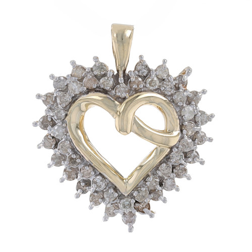 Yellow Gold Diamond Heart Pendant - 10k Round Brilliant 1.00ctw Love Wreath