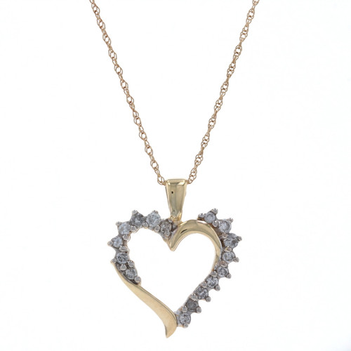 Yellow Gold Diamond Heart Pendant Necklace 18 1/4" - 10k Round Cut .20ctw Love