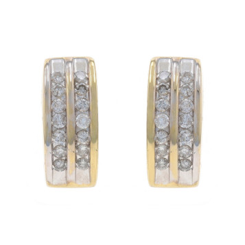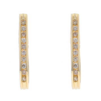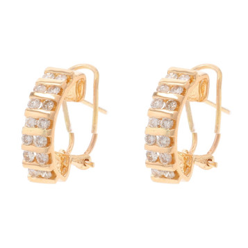 Yellow Gold Diamond J-Hoop Earrings - 14k Round .28ctw Channel Set Pierced