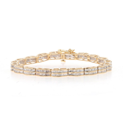 Yellow Gold Diamond Link Bracelet 7" - 10k Baguette 2.00ctw Scallop