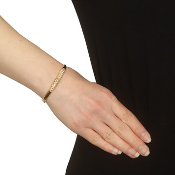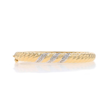 Yellow Gold Diamond Oval Bangle Bracelet 6" - 18k Single Cut .30ctw Rope Twist