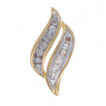 Yellow Gold Diamond Pendant - 14k Baguette & Round .22ctw Wavy Stripe Duo