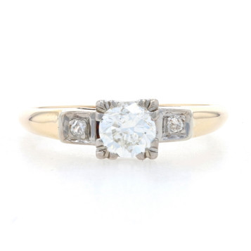 Yellow Gold Diamond Retro Engagement Ring - 14k Transitional Cut .59ctw Vintage