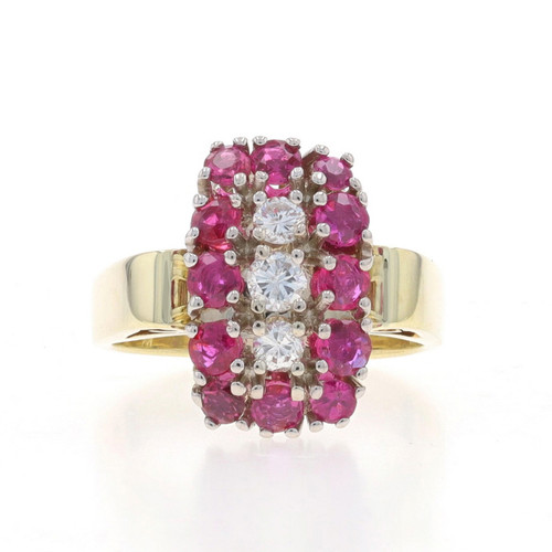 Yellow Gold Diamond Ruby Vintage Cluster Halo Cocktail Ring - 14k Round 1.37ctw