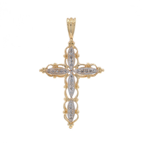 Yellow Gold Diamond Scalloped Cross Pendant - 10k Single .20ctw Faith