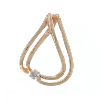 Yellow Gold Diamond Solitaire Pendant - 14k Round Brilliant Double Teardrop