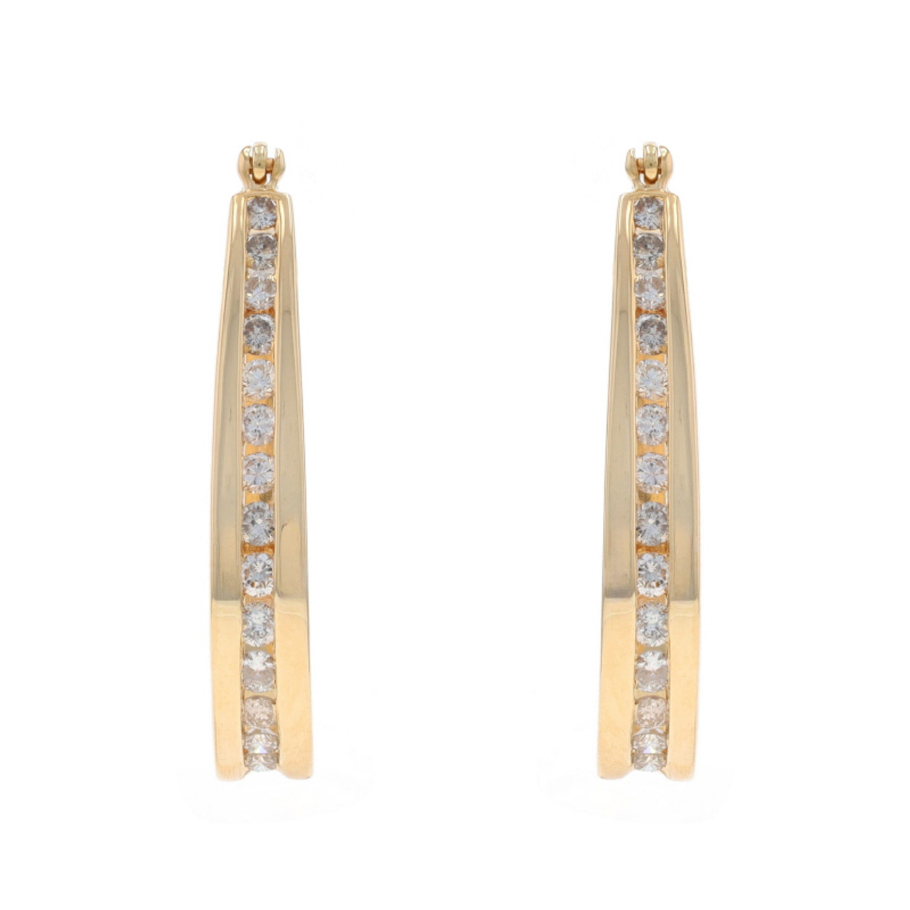 Yellow Gold Diamond Tapered Oval Hoop Earrings 14k Rd 1.50ctw ChannelSet Pierced