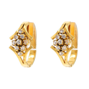 Yellow Gold Diamond Vintage Cluster Hoop Earrings - 14k Rose .54ctw Floral Pierced