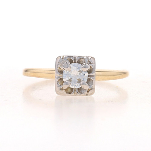 Yellow Gold Diamond Vintage Solitaire Engagement Ring - 14k Round .35ct Floral