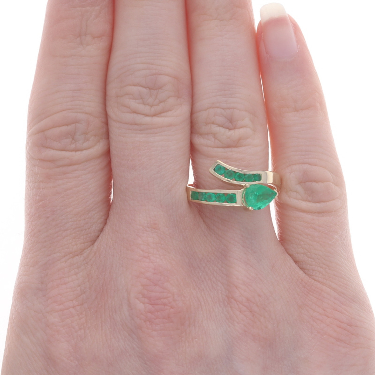 Yellow Gold Emerald Bypass Ring - 18k Pear & Round .83ctw Sz 9