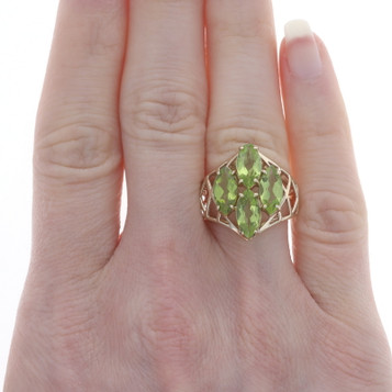 Yellow Gold Emerald Cluster Cocktail Dome Ring - 14k Round 2.55ctw Latticework