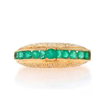 Yellow Gold Emerald Diamond Dome Band - 18k Round & Emerald 1.78ctw Stripe Ring