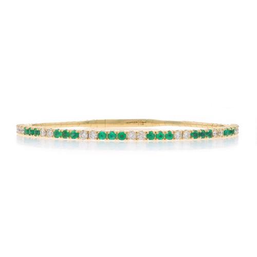 Yellow Gold Emerald & Diamond Flex Bangle Bracelet 6 1/2" - 14k Round 1.86ctw