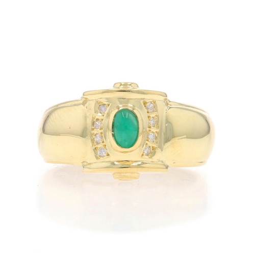 Yellow Gold Emerald Diamond Ring - 18k Oval Cabochon .33ctw