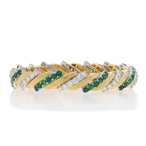 Yellow Gold Emerald & Diamond Vintage Link Bracelet 6 1/2" 18k 900 Rnd 10.08ctw