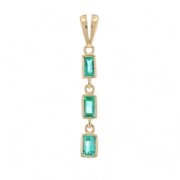 Yellow Gold Emerald Three-Stone Dangle Pendant - 18k Emerald .86ctw Bezel Set
