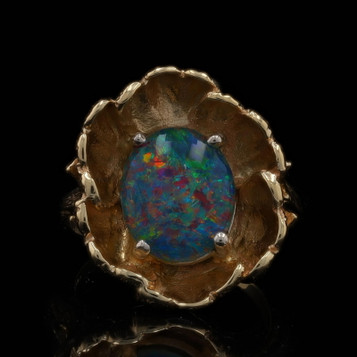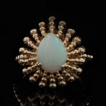 Yellow Gold Fire Agate Cocktail Solitaire Ring - 14k Oval Cabochon