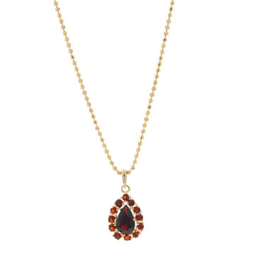 Yellow Gold Garnet Halo Pendant Necklace 18" - 14k Pear & Round 2.16ctw