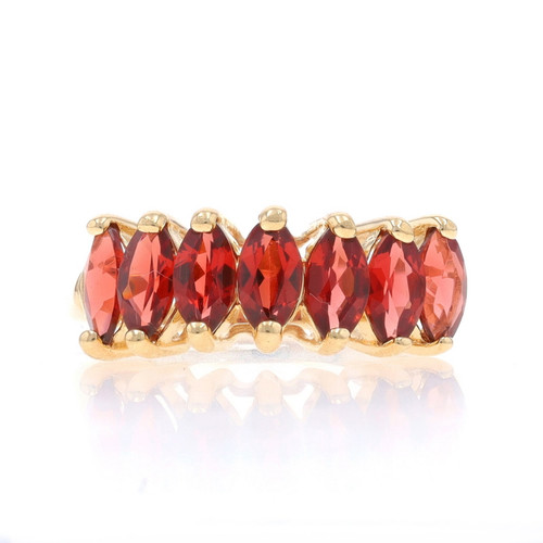 Yellow Gold Garnet Seven-Stone Ring - 10k Marquise 1.12ctw Tiered