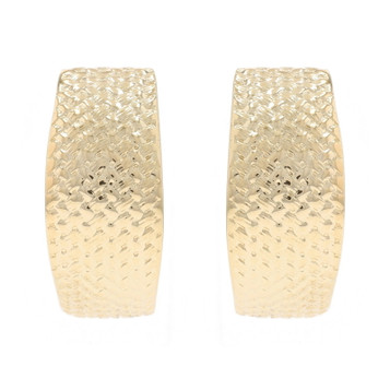 Yellow Gold Geometric Lace Angled Hoop Earrings - 14k Pierced