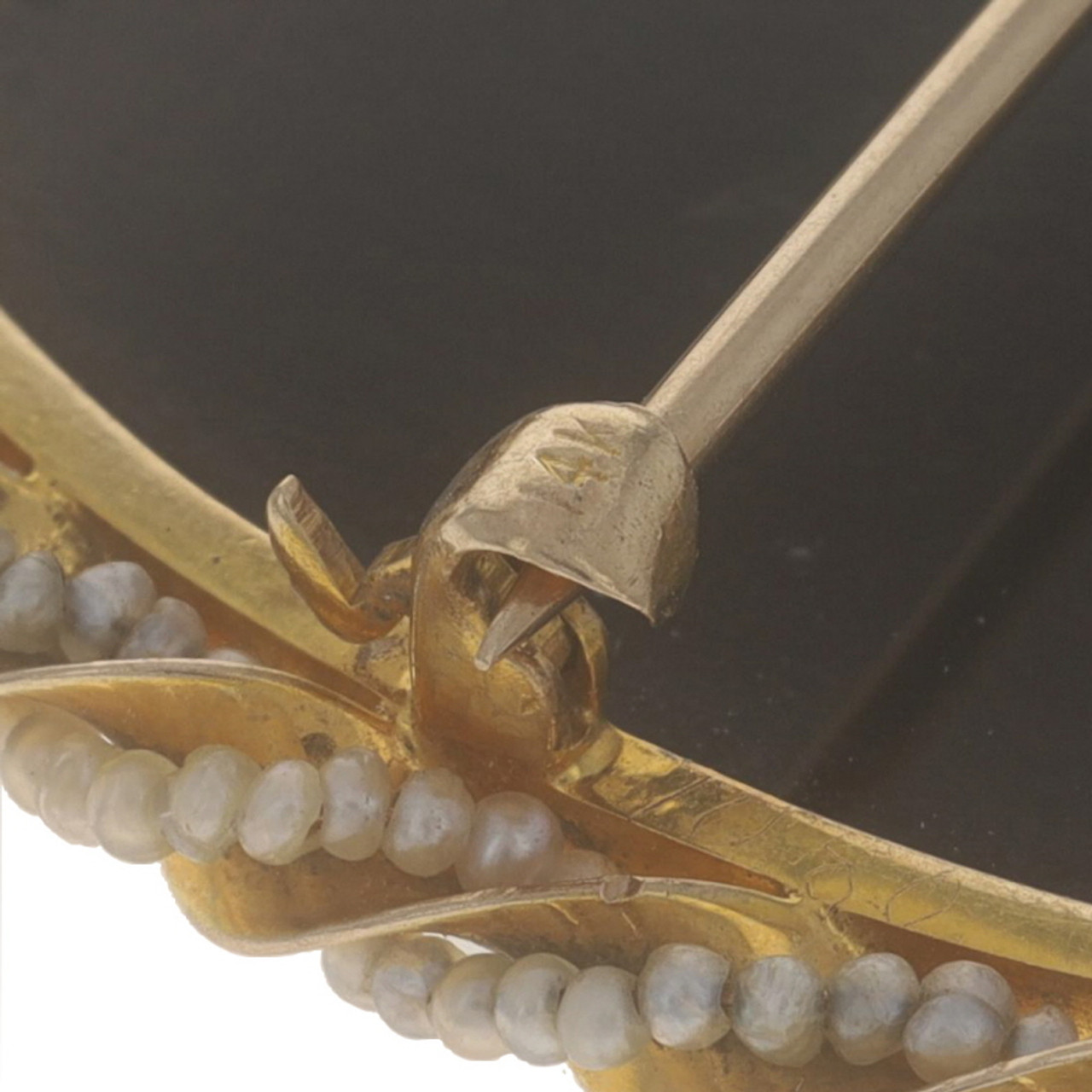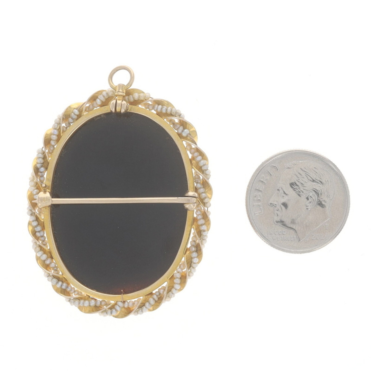 Yellow Gold Hardstone Banded Agate & Pearl Art Deco Brooch/Pendant 14k Cameo Pin