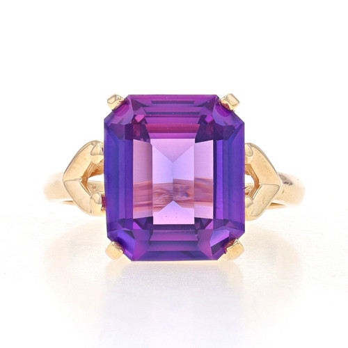 Yellow Gold Lab-Created Sapphire Vintage Cocktail Solitaire Ring 10k Emer 6.18ct