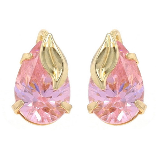 Yellow Gold Light Pink Cubic Zirconia Stud Earrings - 14k Pear 2.58ctw Leaves