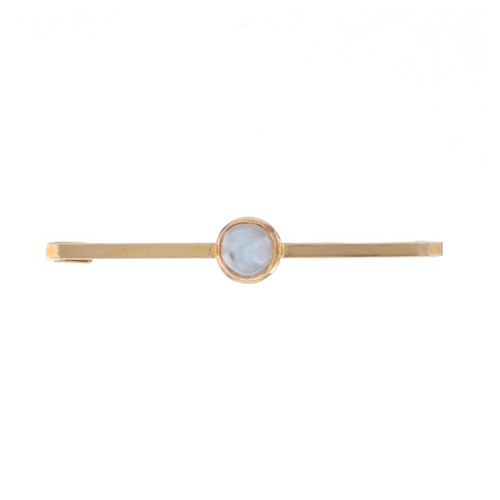 Yellow Gold Moonstone Edwardian Solitaire Bar Brooch 14k RndCab.90ct Antique Pin