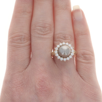 Yellow Gold Mother of Pearl Cubic Zirconia Dome Cocktail Band 14k Inlay Ring Sz7
