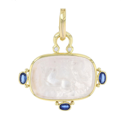 Yellow Gold Mother of Pearl Venetian Glass Kyanite Enhancer Pendant 14k Cameo