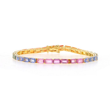 Yellow Gold Multi-Color Sapphire Tennis Bracelet 7" - 14k Emerald Cut 16.32ctw