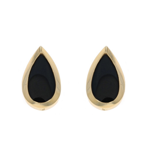 Yellow Gold Onyx Short Drop Earrings - 14k Teardrop Pierced