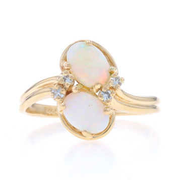 Yellow Gold Opal Diamond Bypass Ring - 14k Oval Cabochon .74ctw Two-Stone