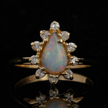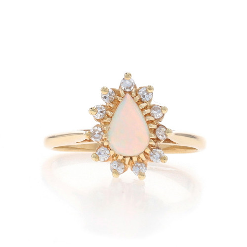 Yellow Gold Opal Diamond Halo Ring - 10k Pear Cabochon .60ctw `