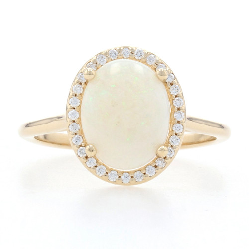 Yellow Gold Opal & Diamond Halo Ring - 14k Oval Cabochon Cut 1.77ctw