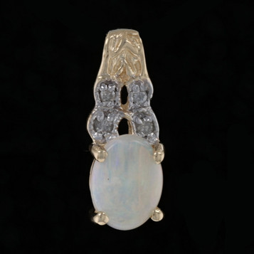 Yellow Gold Opal Diamond Loop Ring - 14k Oval Cabochon 2.09ctw Milgrain