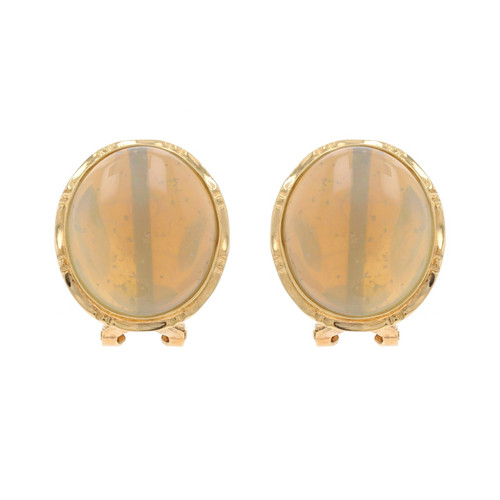 Yellow Gold Opal Large Stud Earrings - 14k Oval Cabochon Pierced
