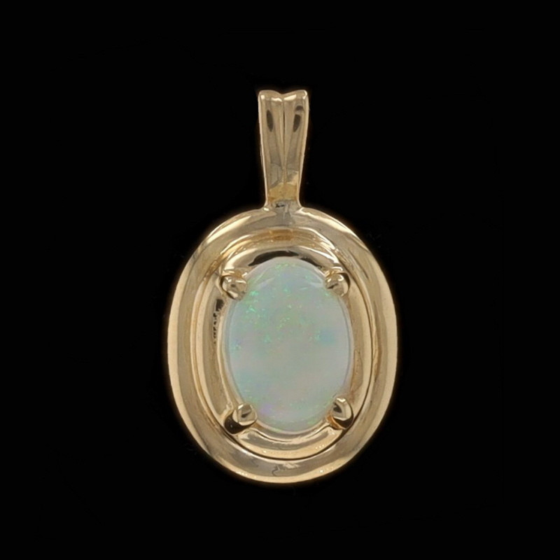 Yellow Gold Opal Solitaire Pendant - 14k Oval Cabochon .62ct