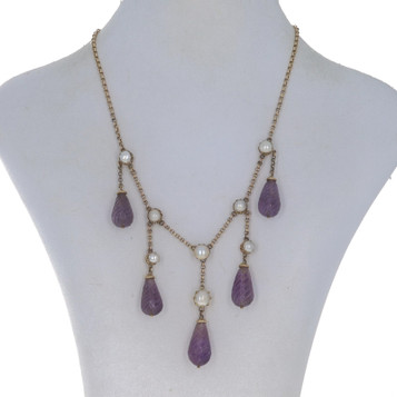 Yellow Gold Pearl Edwardian Nine-Strand Necklace 15 3/4" - 14k Antique Chain