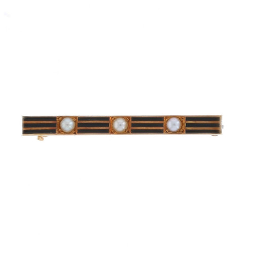 Yellow Gold Pearl Edwardian Petite Three-Stone Bar Brooch 14k AntiqueLingeriePin