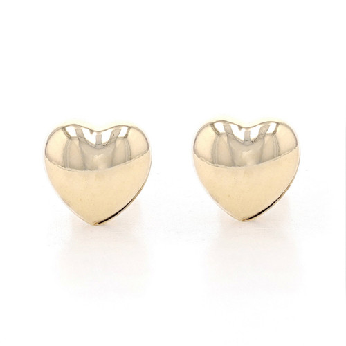 Yellow Gold Puffy Heart Stud Earrings - 18k Love Pierced