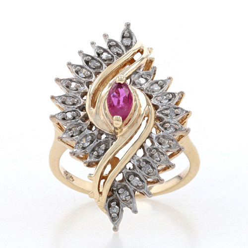 Yellow Gold Ruby & Diamond Bypass Ring - 10k Marquise .51ctw