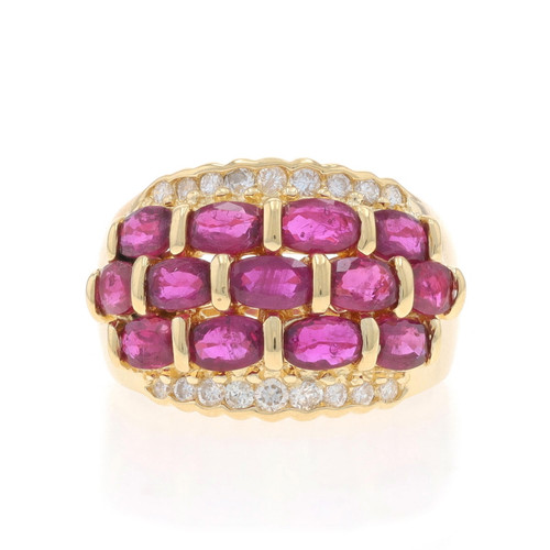 Yellow Gold Ruby & Diamond Cluster Cocktail Band - 14k Oval 4.91ctw Scallop Ring