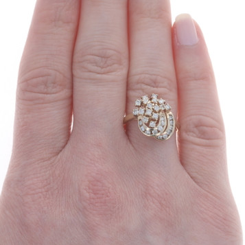 Yellow Gold Ruby Diamond Cluster Cocktail Ring - 14k Marquise & Rnd 1.4ctw Swirl