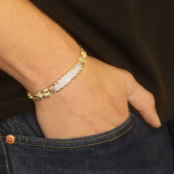 Yellow Gold Ruby Diamond Curved Bar Bracelet 7 1/4" - 14k Square 4.18ctw Stripes