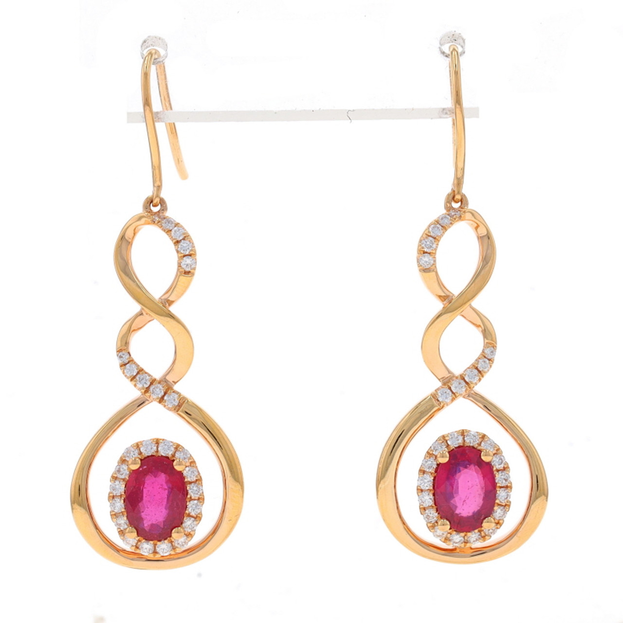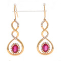 Yellow Gold Ruby & Diamond Dangle Earrings - 18k Oval 3.14ctw Infinity Twist